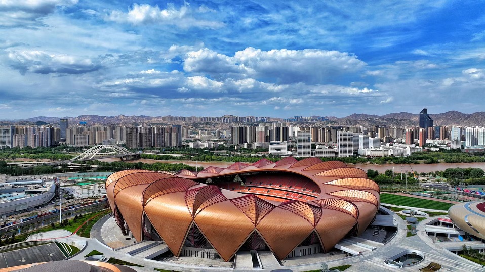 由中國十七冶承建的蘭州奧體中心,采用“飛天花舞”設(shè)計(jì)理念,建筑猶如五朵花舞動(dòng)于絲綢之路上,總建筑面積46.6萬平方米,由60000座玫瑰體育場、8000座郁金香綜合館、3000座百合游泳館、3000座荷花網(wǎng)球館、蘭花運(yùn)動(dòng)員公寓等單體組成。其中郁金香綜合館弦支穹頂是世界上首個(gè)吊掛大噸位斗形屏(40t)的矢跨比小于1/12的90米級(jí)大跨度弦支穹頂結(jié)構(gòu)工程。