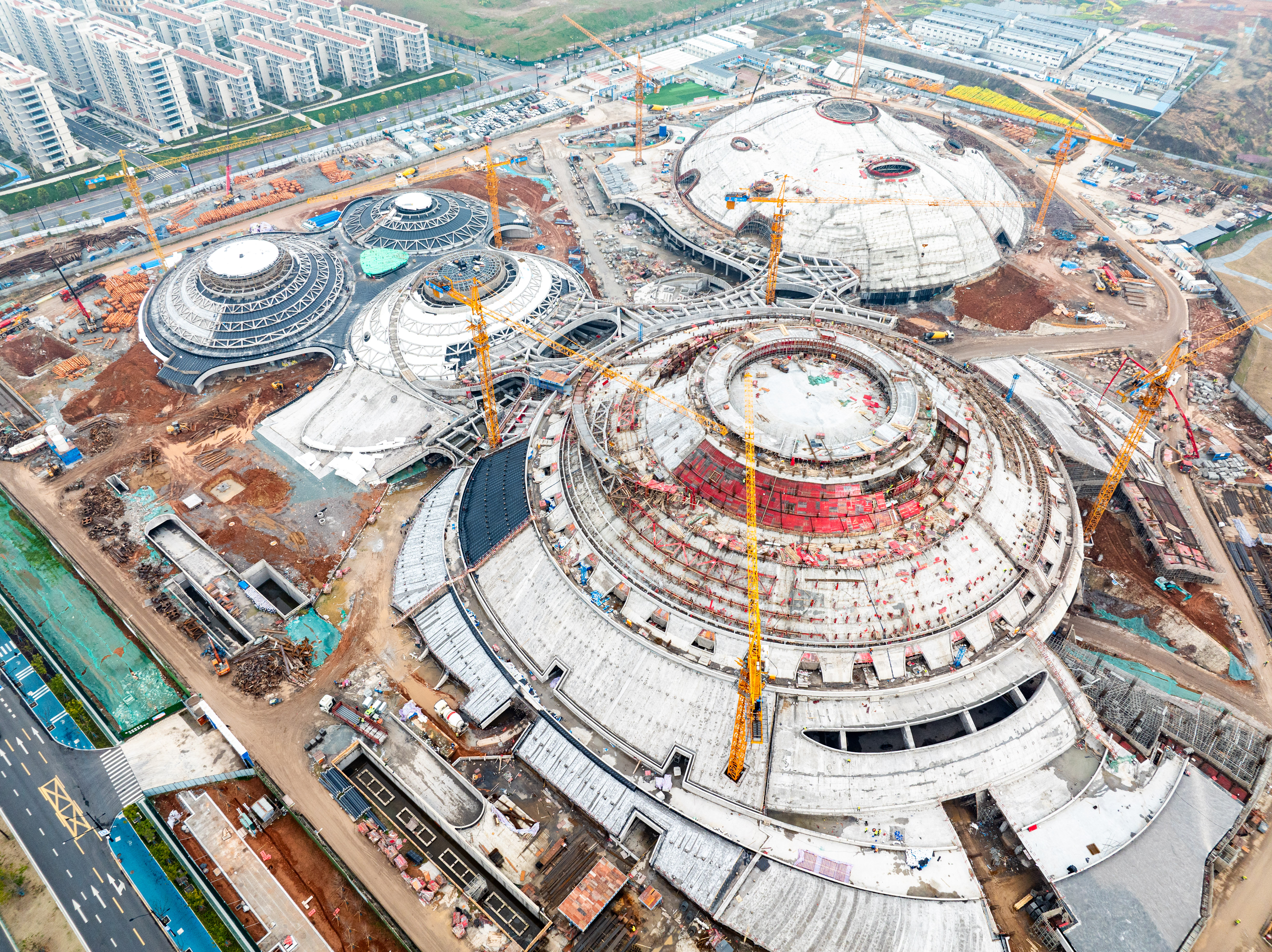 由上海寶冶承建的衢州市體育中心工程——三館及配套工程項(xiàng)目是浙江省重點(diǎn)民生工程,也是浙江省十八運(yùn)的主場館。以“山水建筑+生態(tài)低碳+運(yùn)動(dòng)主題”為設(shè)計(jì)理念。項(xiàng)目總用地面積139347平方米,總建筑面積165212.85平方米。涵蓋超大直徑預(yù)應(yīng)力清水環(huán)梁結(jié)構(gòu)、世界最大跨度密肋板殼混凝土屋蓋結(jié)構(gòu)等技術(shù)難題。建成后將與衢州體育場構(gòu)成世界最大覆土建筑群。